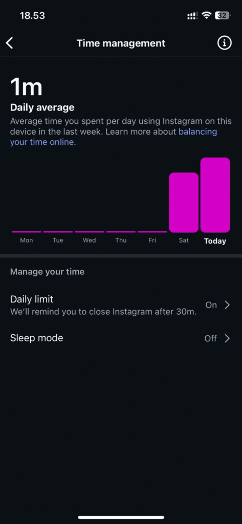 Check out this screenshot of my Instagram usage.